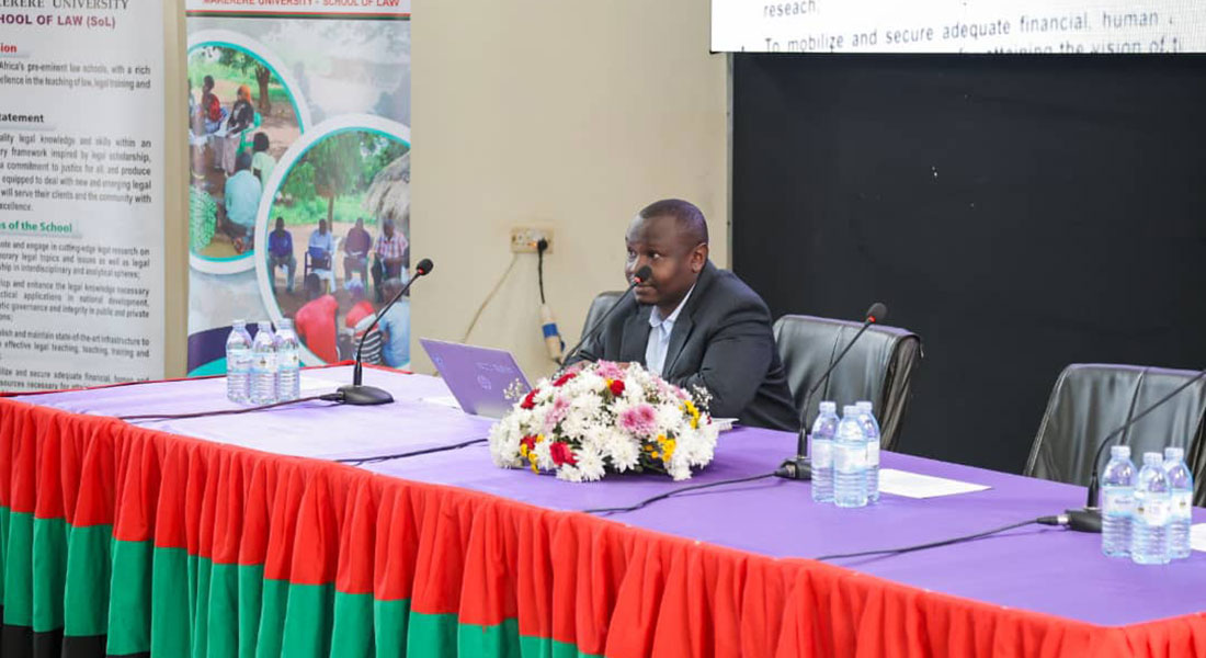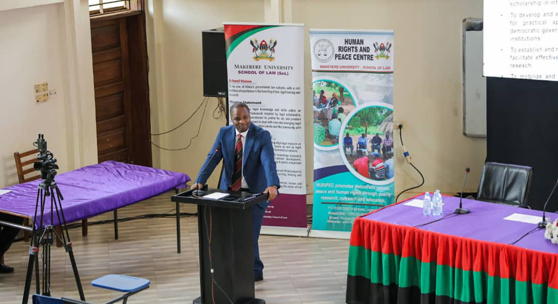 Dr. Sylvie Namwase (HURIPEC Principal Investigator), Frederick Kawooya (Royal Danish Embassy), Dr. Busingye Kabumba (HURIPEC Director), Prof. George Mutalemwa (SAUT PI), Prof. Ole Wæver (CRIC PI), Prof. Zahara Nampewo (Deputy Dean, Makerere Law).